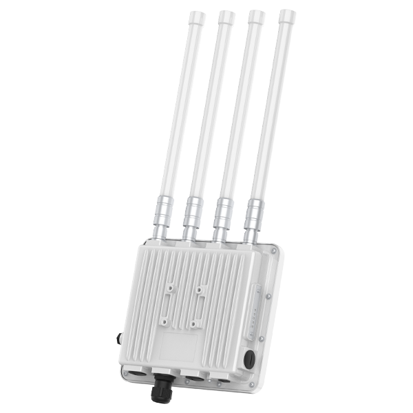 WiFi 6室外高性能无线AP双频四流,2975Mbps,1个千兆上联以太网接口,1个千兆下联以太网接口,一个千兆SFP光口,支持PoE供电,支持12V/2A直流供电,标配4根6dBi玻璃钢全向天线,标配一个802.3at PoE供电模块; |